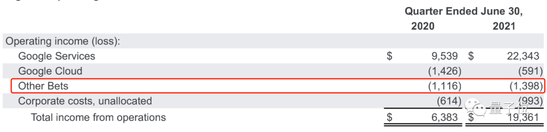 谷歌最新一期 2021 Q2 季度财报显示,包括 DeepMind、智能医疗 Verily 在内的其他业务依旧亏损。